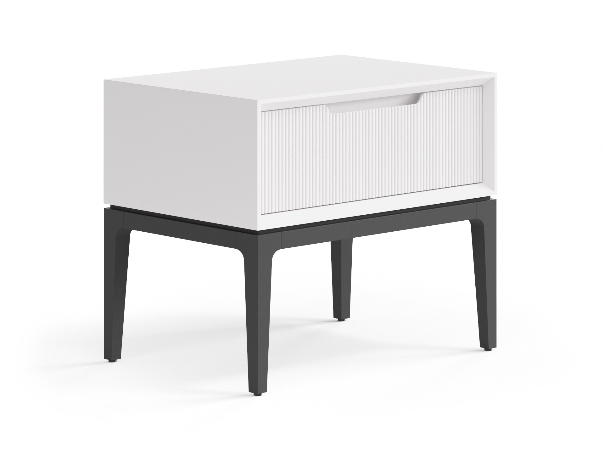Стильная тумба гармонично впишется в интерьер спальни. Ножки могут быть в цвет корпуса или же в чёрном матовом покрытии эмалью — любое решение будет выглядеть элегантно и современно. Рельефная фрезеровка на фасаде приятна на вид и на ощупь, придаёт изделию индивидуальность и характер. Фрезерованная ручка выполнена специально для удобного захвата, а механизм продуман до мелочей — тихий и плавный, он делает ежедневное пользование изделием максимально комфортным.