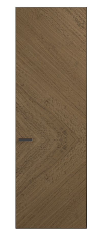 Полотно Rift в скрытом алюминиевом коробе становится полноценным элементом декора. В коллекции представлено 9 моделей дверей в высоте до 3 метров. Рисунок раскладки шпона варьируется от простого до сложного. «Рубашка» для каждого полотна подбирается вручную по цвету, текстуре и фактуре.