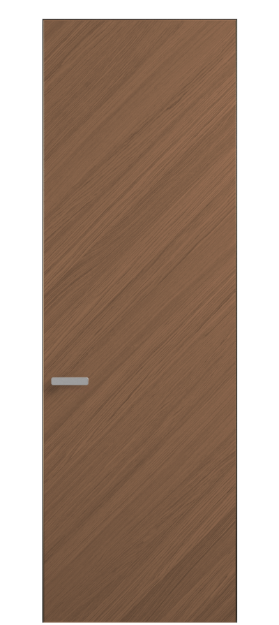 Полотно Rift в скрытом алюминиевом коробе становится полноценным элементом декора. В коллекции представлено 9 моделей дверей в высоте до 3 метров. Рисунок раскладки шпона варьируется от простого до сложного. «Рубашка» для каждого полотна подбирается вручную по цвету, текстуре и фактуре.