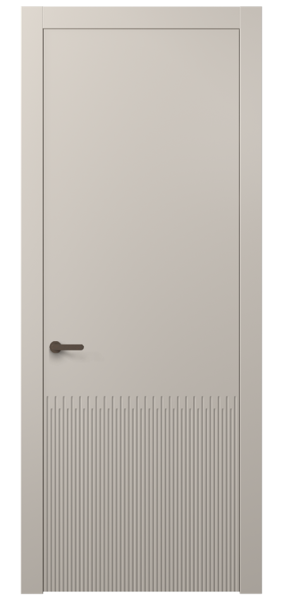 Dune — коллекция дверей украшена частой прямой фрезеровкой, которая напоминает волны дюн в пустыне. Созданная на поверхности полотна текстура привлекает взгляд и добавляет глубину пространству. Двери Dune — это сочетание современного дизайна и вдохновения живописными природными ландшафтами.